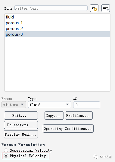 注:修改了任意区域为多孔介质区域后,该选项才能被激活。