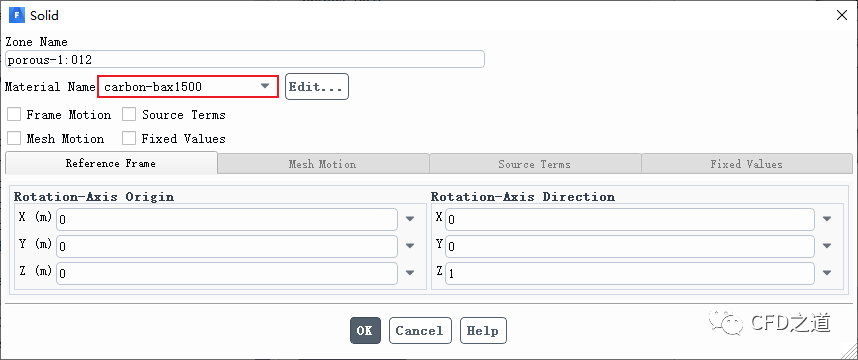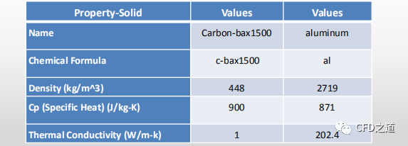 注:这里材料Carbon-bax1500为多孔介质骨架材料,而aluminum为默认的固体壁面材料