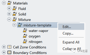 鼠标右键选择模型树节点mixture-template,点击弹出菜单项Edit…打开材料编辑对话框