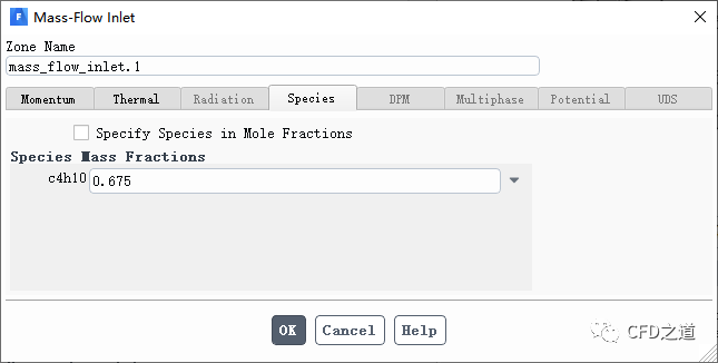 设置入口组分c4h10质量分数为0.675,如下图所示