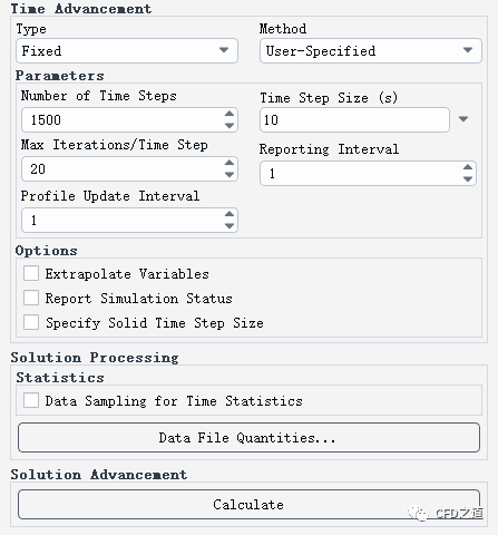 设置时间步长为10 s,设置时间步数为1500,点击按钮Calculate开始计算