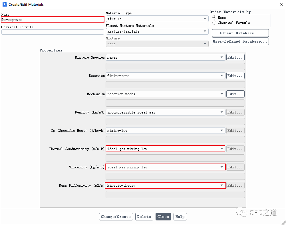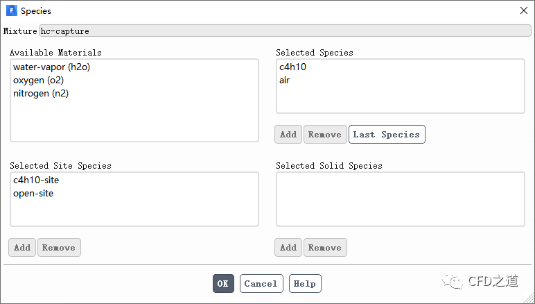 点击混合物材料定义对话框中Mixture Species右侧按钮Edit…弹出设置对话框 -