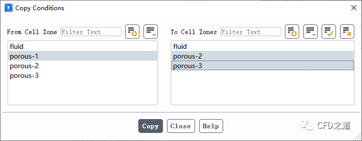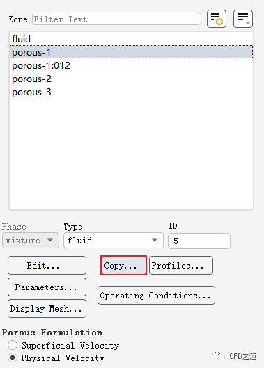 如下图所示,选择区域porous-1,点击下方按钮Copy…弹出参数复制对话框