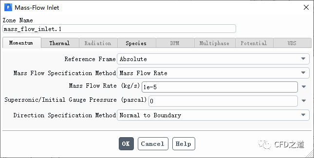 如下图所示设置入口边界质量流量为1e-5 kg/s