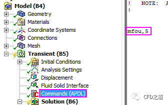 注:该命令指定每5个时间步保存一次结果文件。本案例中未涉及到其他的热边界,若需要指定热边界,则可以在Transient节点中通过插入APDL命令来实现。