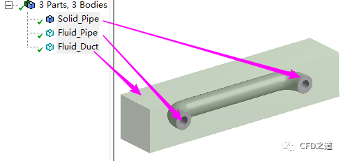管道几何采用外部导入,流体域几何在DM中抽取。