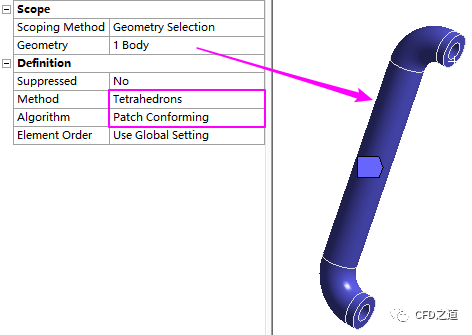 属性窗口中设置Method为Tetrahedrons,如下图所示