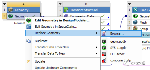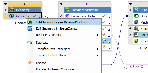 右键选择A2单元格,选择菜单项Edit Geometry in DesignModeler…进入DM模块