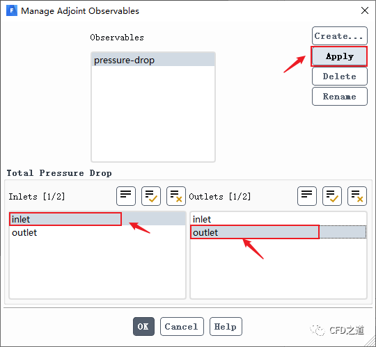 注:在所有的adjoint面板中,若同时存在Apply及OK按钮,通常需要先点击Apply按钮,再点击OK按钮。