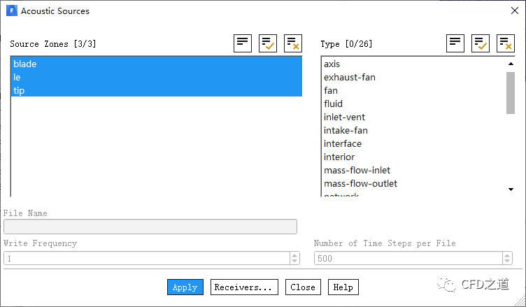 选择面板按钮Define Sources…打开下图所示对话框,如图所示选择Source Zones