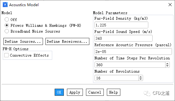 选择模型树节点Models > Acoustics进入声学计算面板,如下图所示设置参数