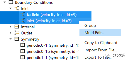 如下图所示,同时选中三个壁面,点击鼠标右键,选择Multi Edit…