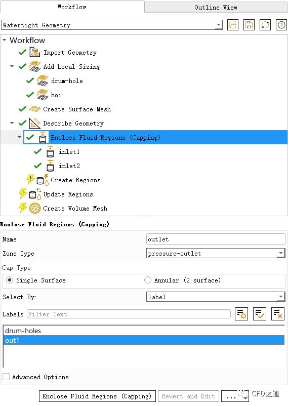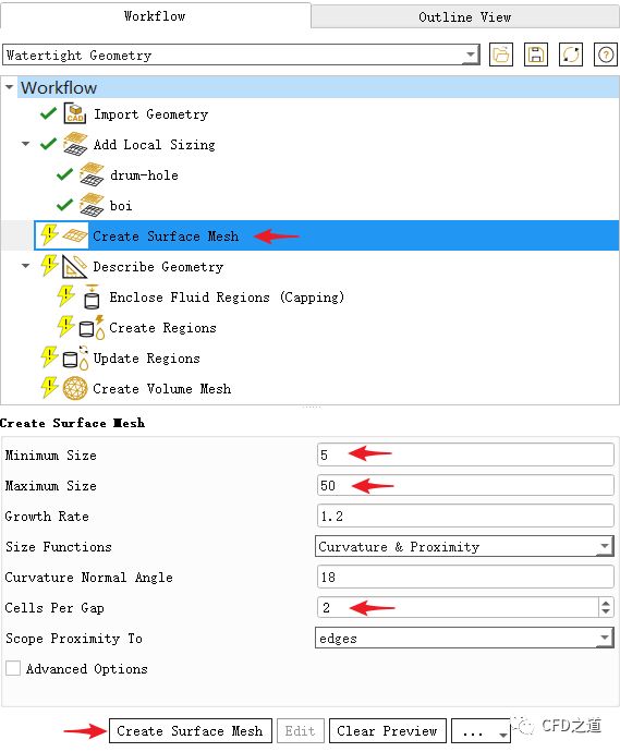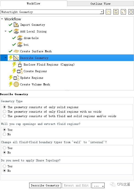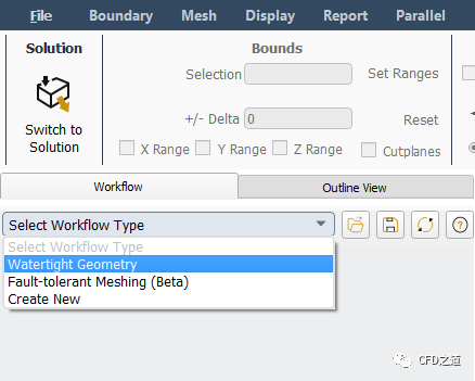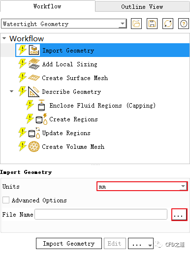 注:利用watertight流程构建网格需要保证几何文件的封闭性。建议在其他CAD软件中(如DM、SCDM等)中检查几何模型是否存在缺陷。