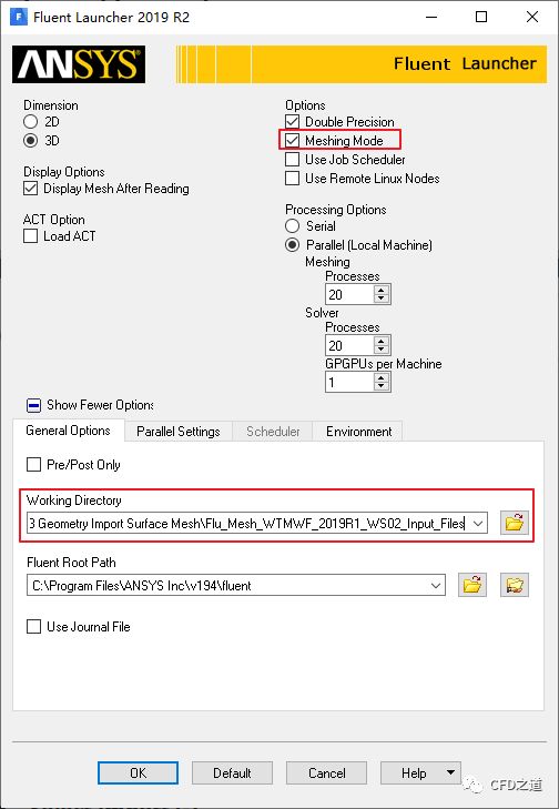 启动Fluent Meshing,激活选项Meshing Mode启用网格模式