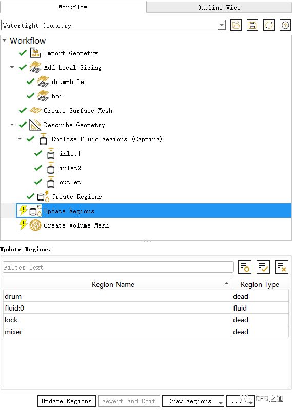 点击模型树节点Update Regions,如下图所示设置区域类型