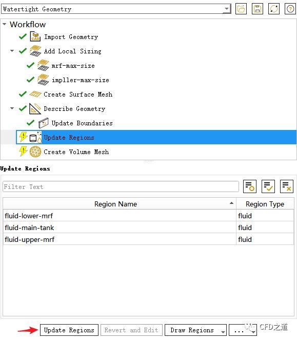 点击节点Update Regions,保持默认设置,点击按钮Update Regions更新区域信息