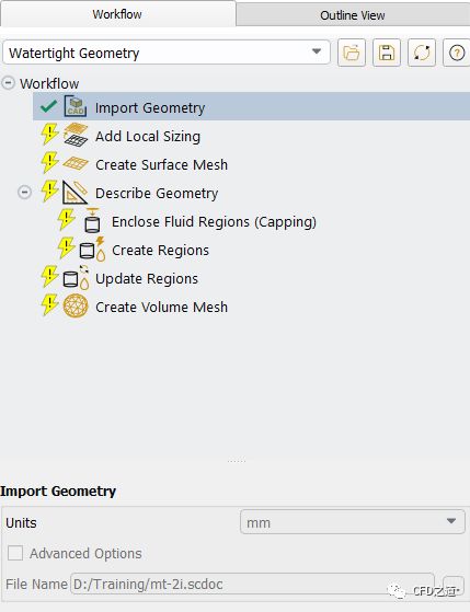 如下图所示点击Import Geometry节点,下方面板中点击文件浏览按钮打开文件对话框并导入几何模型