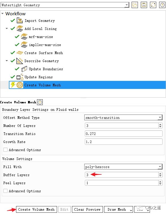 点击节点Create Volume Mesh,如下图所示设置参数,点击按钮Create Volume Mesh生成体网格