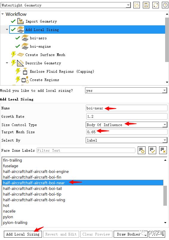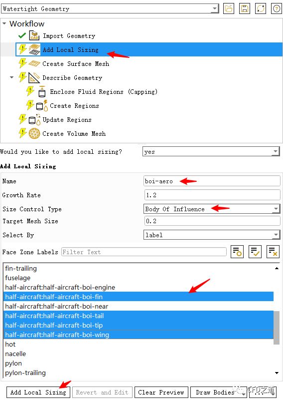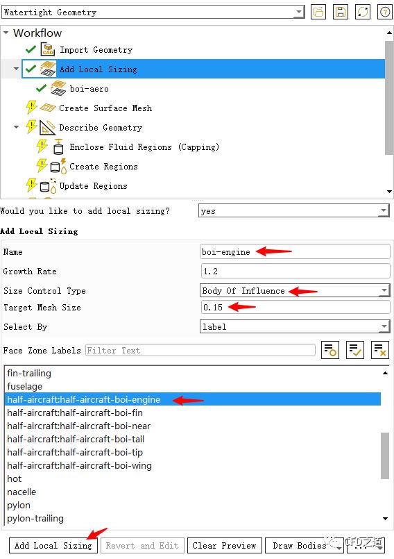 点击节点Add Local Size,如下图所示设置局部尺寸