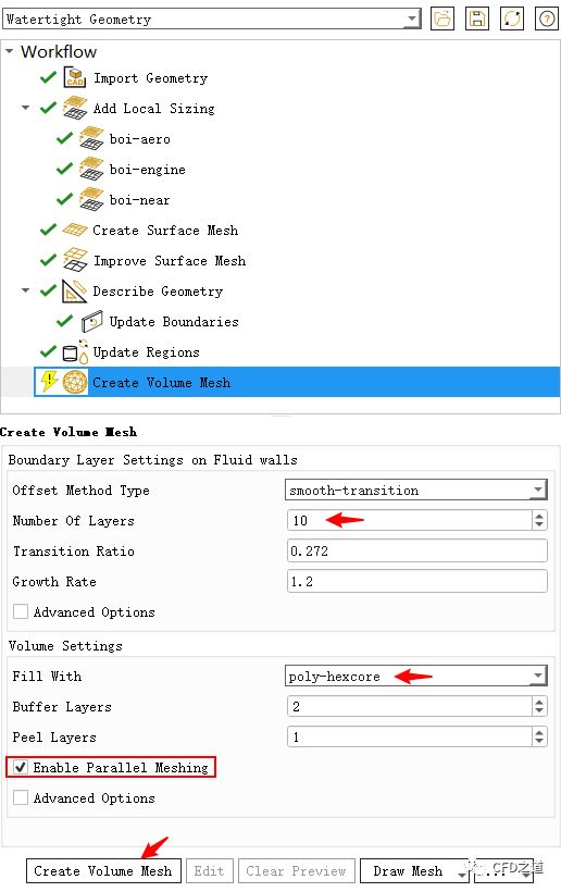 点击节点Creat Volume Mesh,如下图所示设置参数,生成体网格