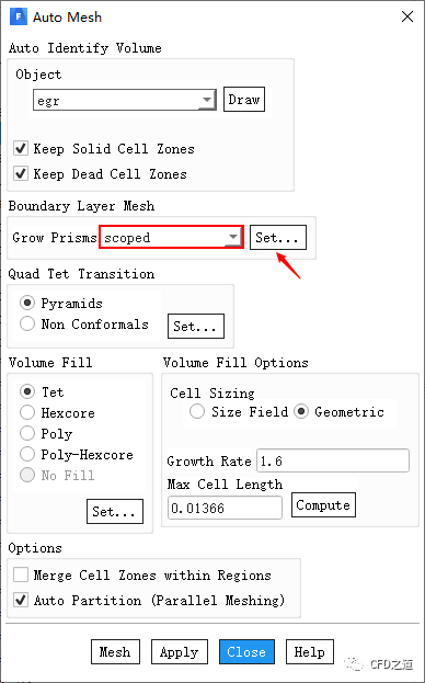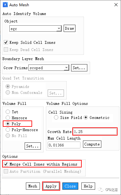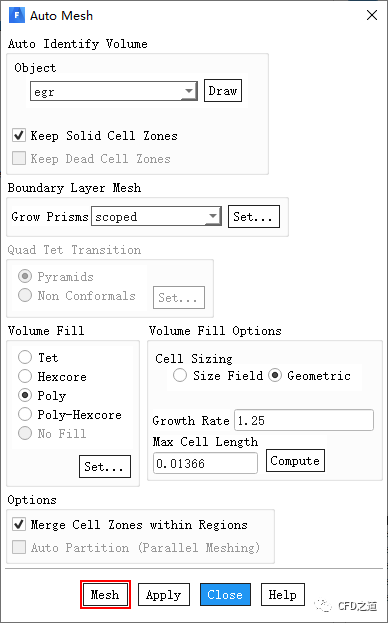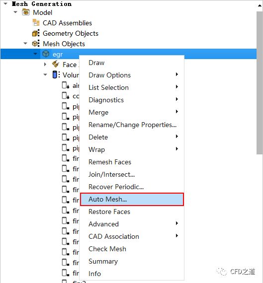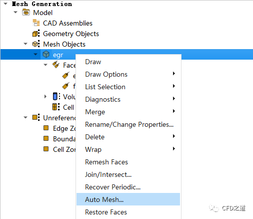 右键选择节点egr,点击菜单项Auto Mesh…打开对话框