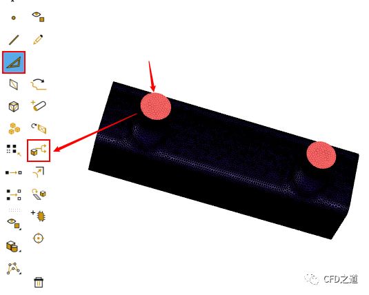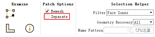 鼠标右键选择冷却液进出口边界,点击工具栏按钮separate将其分离