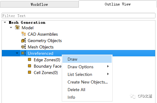 如下图所示,右键选择节点Unreferenced,点击弹出菜单项Draw显示面网格