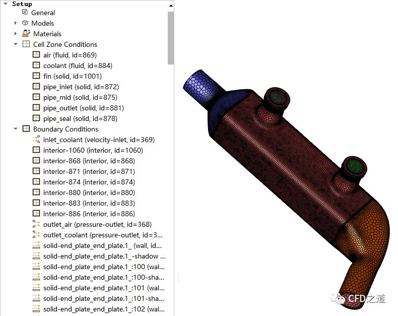 本案例演示利用Fluent Meshing读取EGR冷却器面网格、抽取流体域以及创建体网格的完整流程。