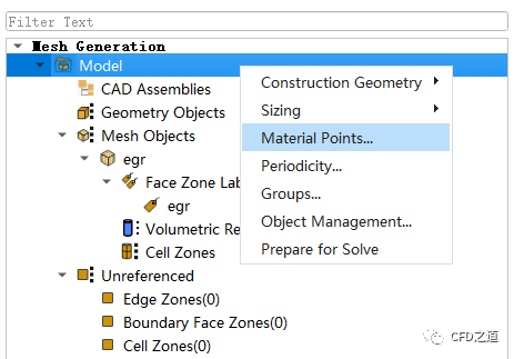 右键选择节点Model,点击弹出菜单项Material Points…打开对话框