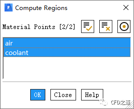 对话框中选择所有的材料点,点击OK按钮创建计算域