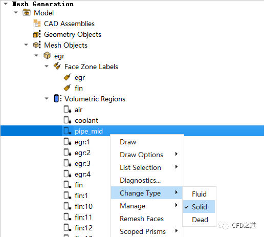 右键选择pipe_mid,点击弹出菜单项Change Type → Solid将其类型修改为solid