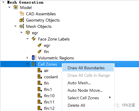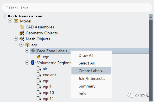 如下图所示,右键选择节点Face Zone Labels,点击菜单项Create Labels…打开对话框