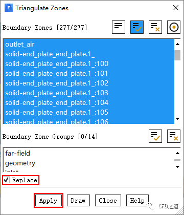 选择所有边界区域,激活选项Replace,点击Apply按钮执行操作