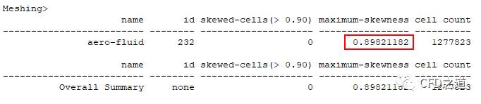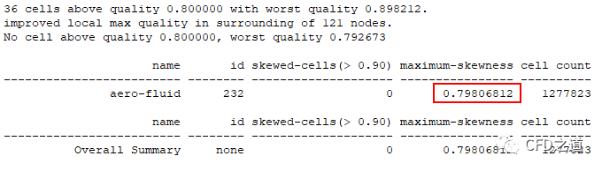 TUI窗框中会输出网格改善后的结果,如下图所示,最大歪斜率降低至0.79806812,较之前的网格有较大提升