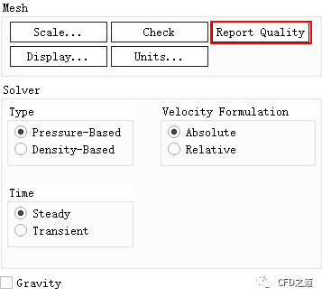 点击按钮Report Quality查看当前cas文件中的网格质量