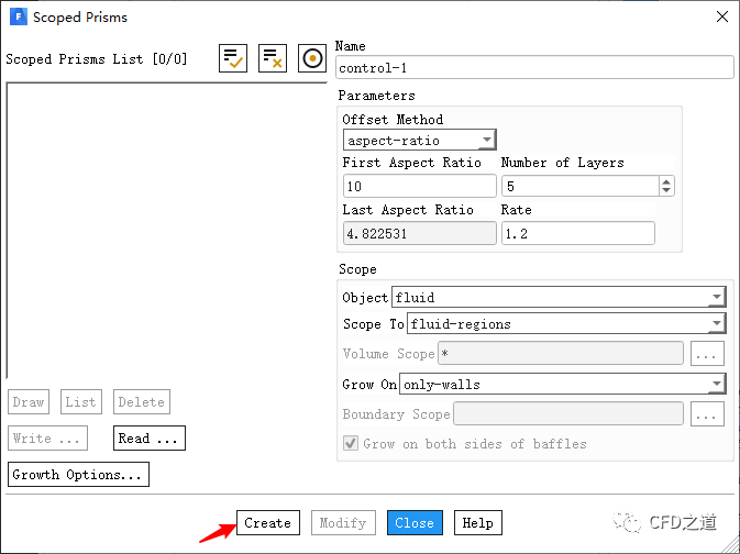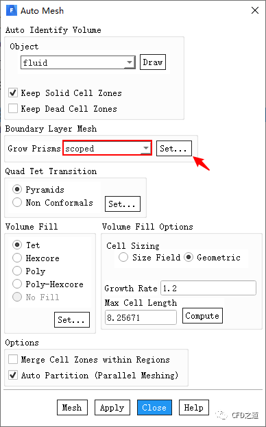 如下图所示,设置Grow Prisms为scoped,点击按钮Set…打开设置对话框