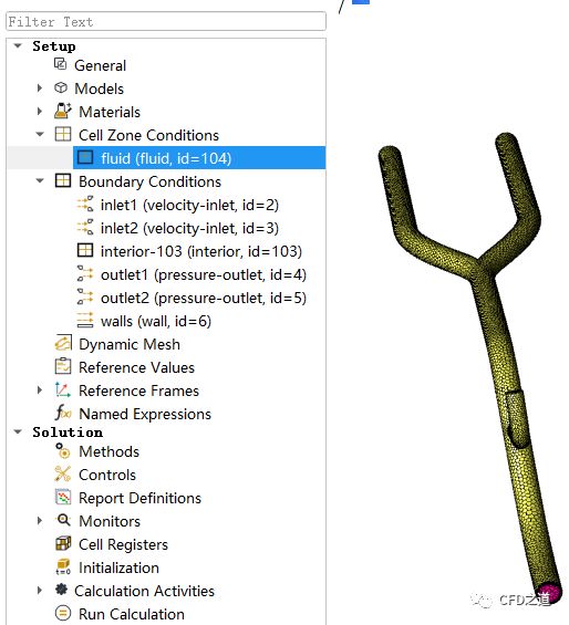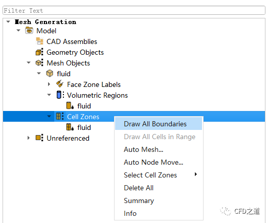 右键选择Cell Zones节点,点击按钮Draw All Boundaries显示计算网格