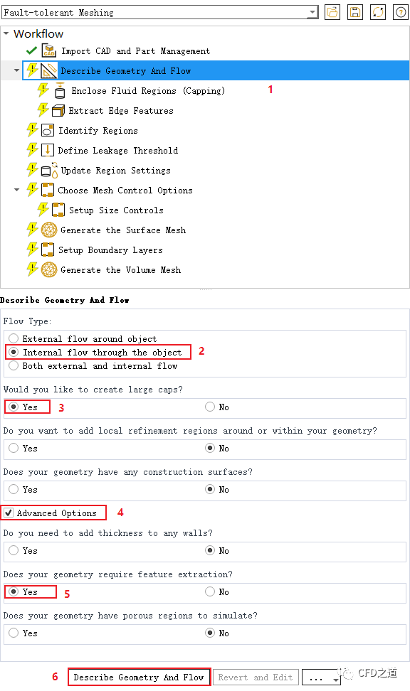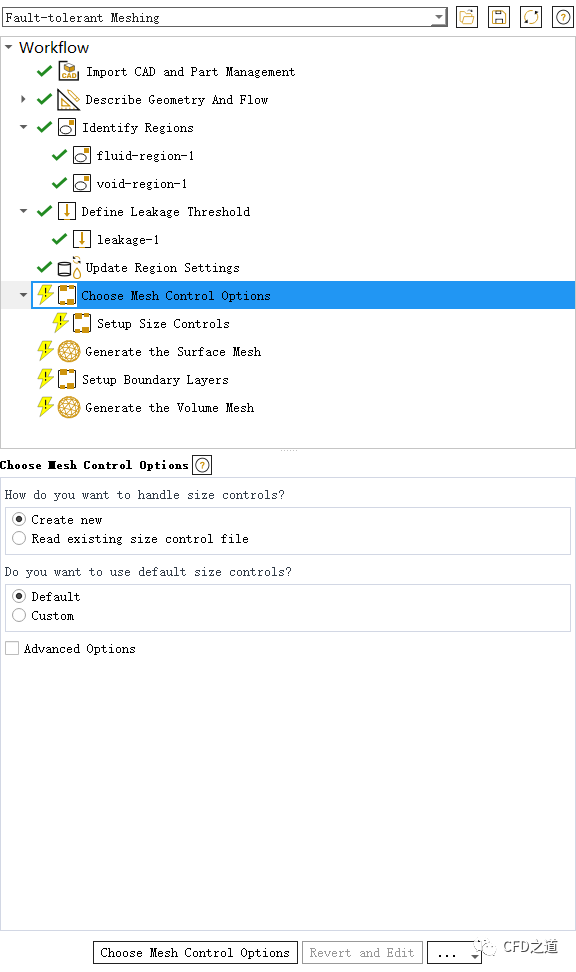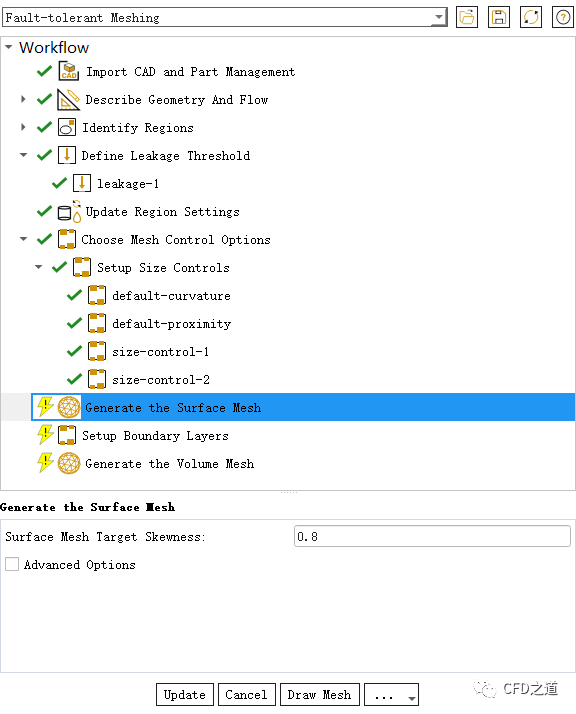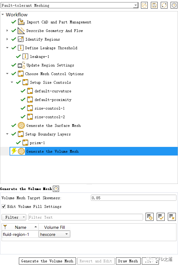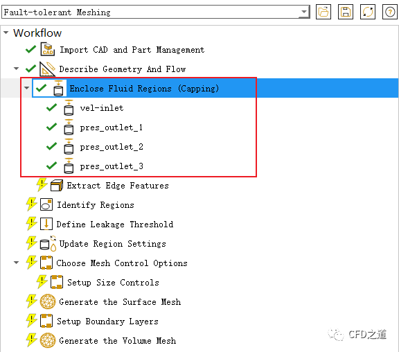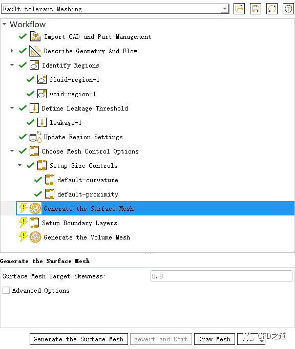注:Fault-tolerant Meshing流程常用于脏几何处理。watertight geometry流程用于干净几何网格划分。