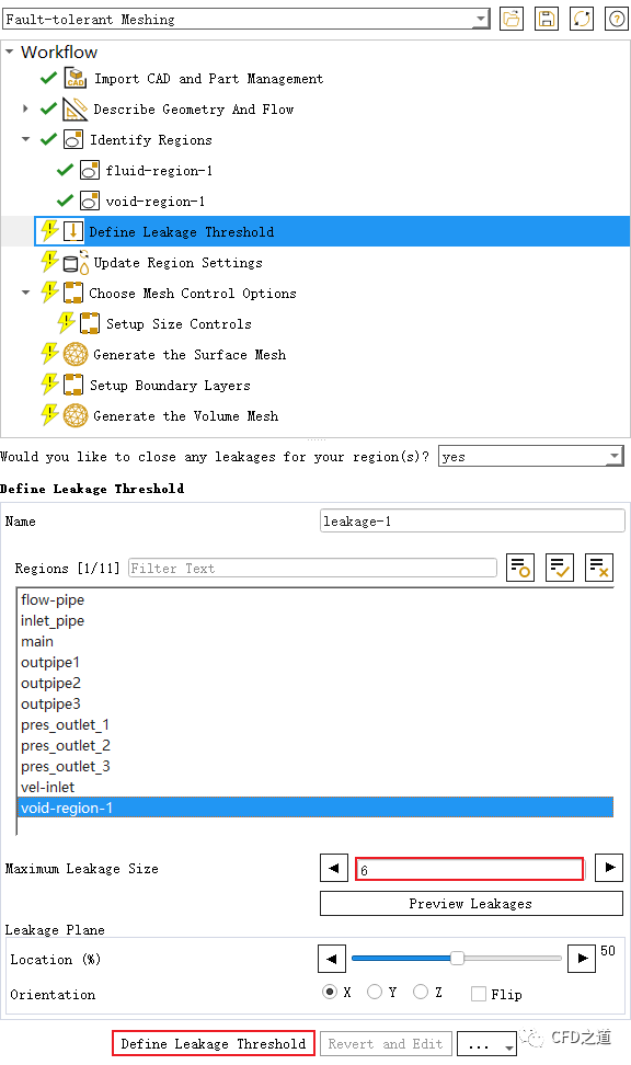 选择区域void-region-1,指定Maximum Leakage Size为6