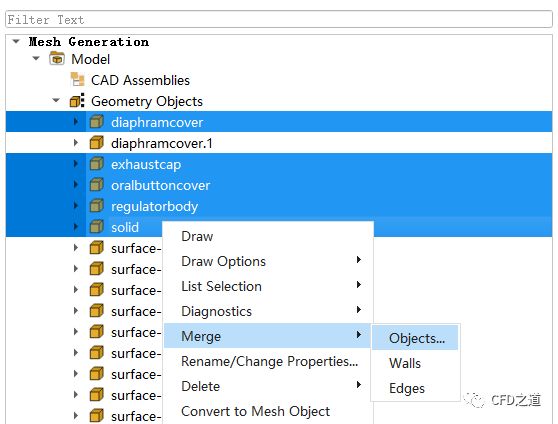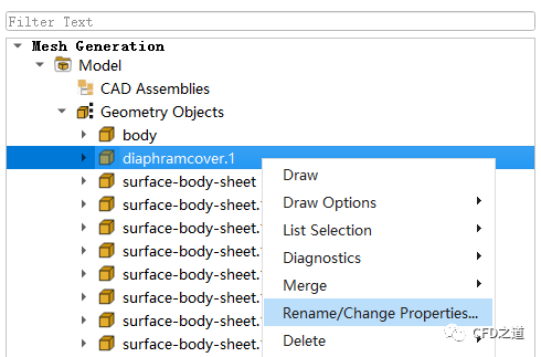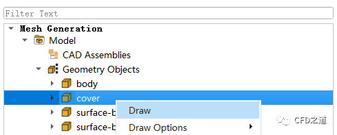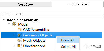 右键选择模型树节点Geometry Objects,选择弹出菜单项Draw All