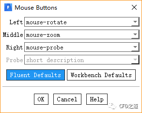 Fluent Meshing中提供了两种鼠标操作模式,默认的Fluent操作模式及Workbench模式。