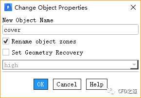 如下图所示修改部件名称为cover,激活选项Rename object zones,点击OK按钮修改名称
