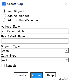 弹出Create Cap对话框,如下图所示设置参数,点击按钮Create创建边界