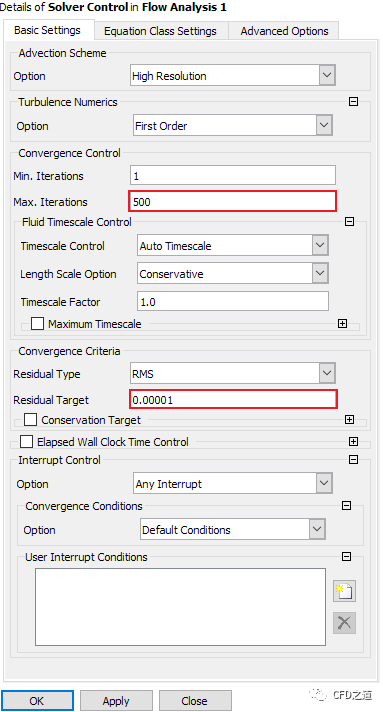 指定最大迭代次数为500,设置目标残差为0.0001,如下图所示
