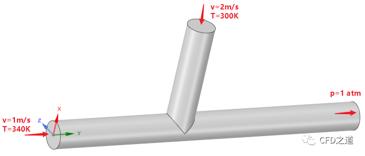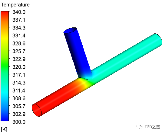 本案例演示利用CFX计算T型管内冷热流体混合流场。