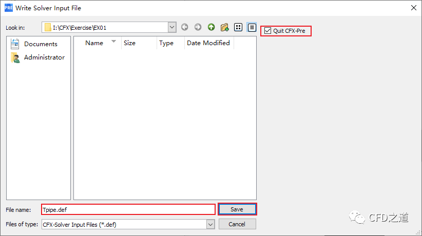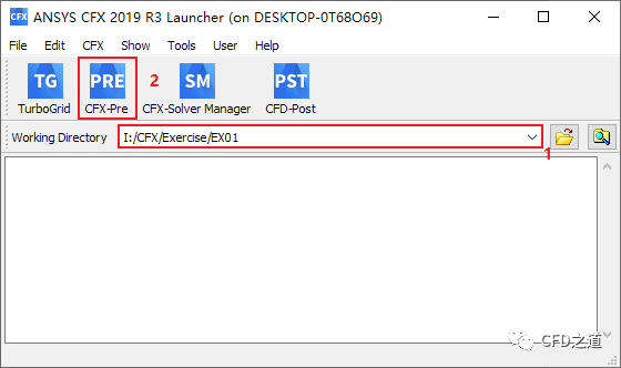 启动CFX,如下图所示设置Work Directory,点击按钮CFX-Pre启动CFX