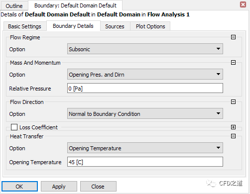 如下图所示指定相对压力为0 Pa,指定温度45 C