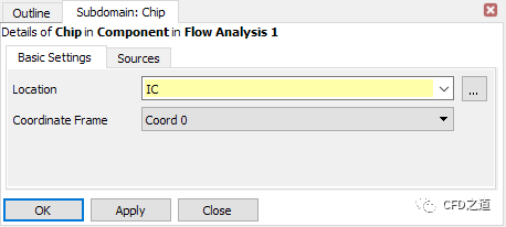 相同方式创建区域Component,指定Location为IC,材料介质为ComponentMat,如下图所示