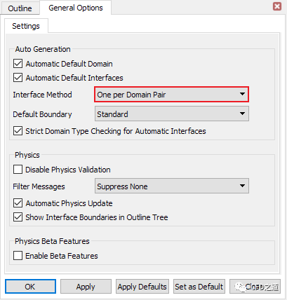 如下图所示双击模型树节点Default Domain Default打开设置对话框