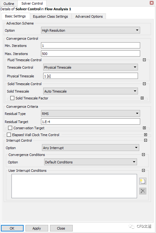 鼠标双击模型树节点Solver Control弹出参数设置面板
